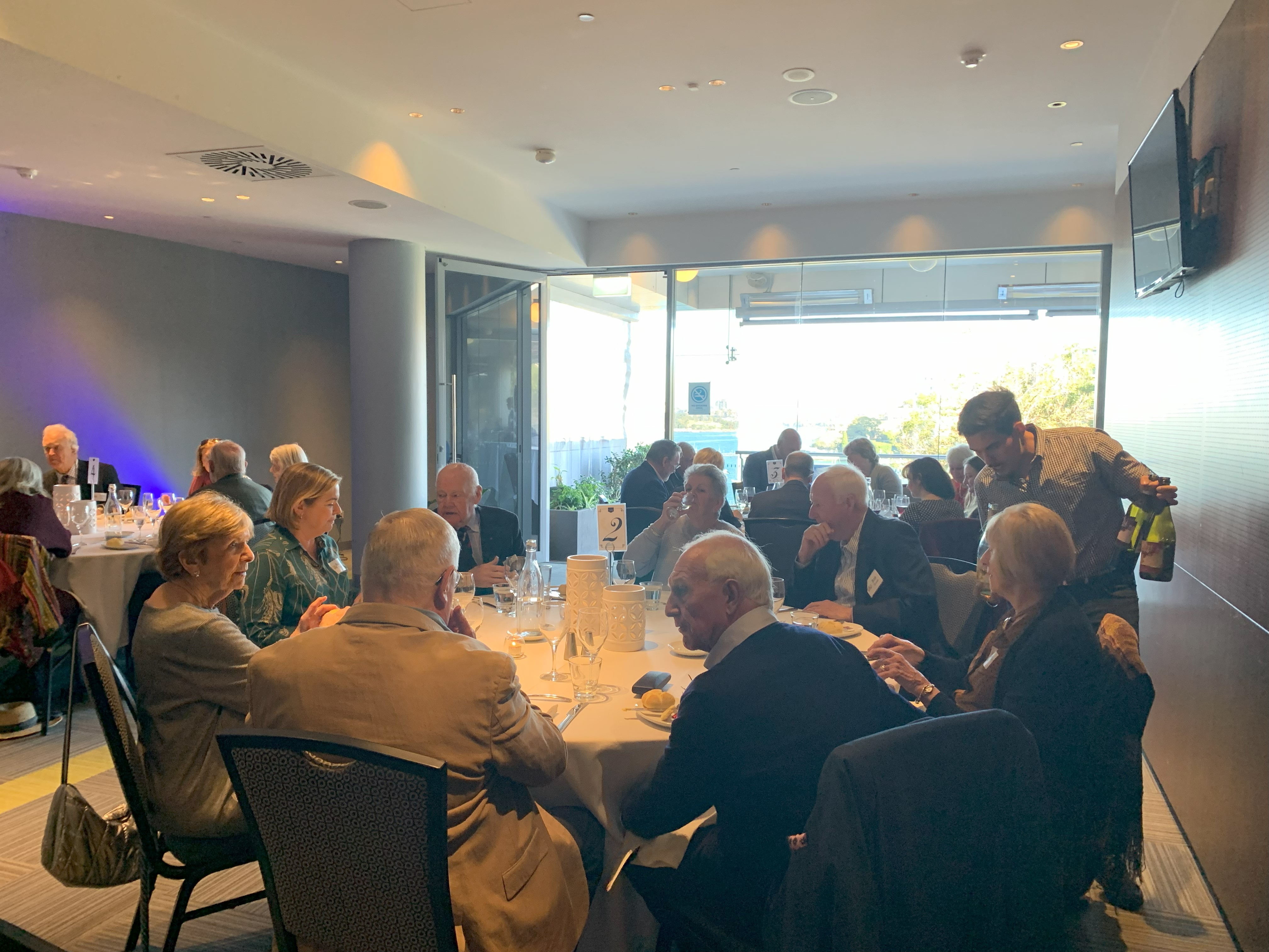 A sparkling Sydney day with views to Lavender Bay and the Bridge.  What could be a better setting for a bunch of ancient mariners, their partners and guests than the famed Kirribilli Club on Sunday 23 July?  Organised by social entrepeneur John Hodges, fine fare and plentiful libations kept the winter chills well at bay.