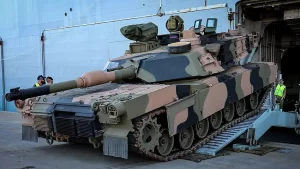 Australian Army M1A2 Abrams tank disembarking HMAS Adelaide
