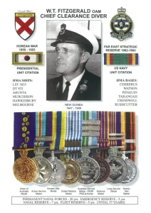 In 1955, there was a requirement for the first clearance divers to be called up into the navy. Fitzgerald was considered worthy to be accepted, even though he was considered overage at 25. He successfully passed and became one of the first clearance divers for the RAN at the rank of petty officer.